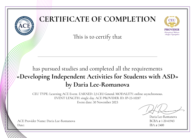 Вы получите четкое понимание как развивать навык самостоятельной деятельности, какие подсказки более эффективные, в какой момент необходимо предоставлять поощрение